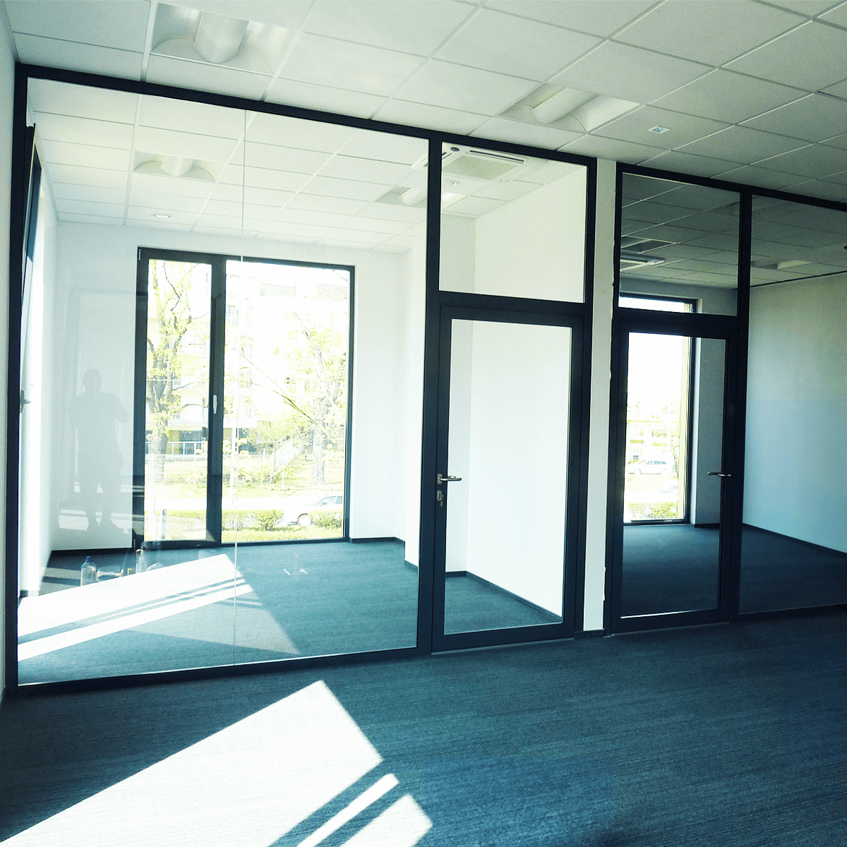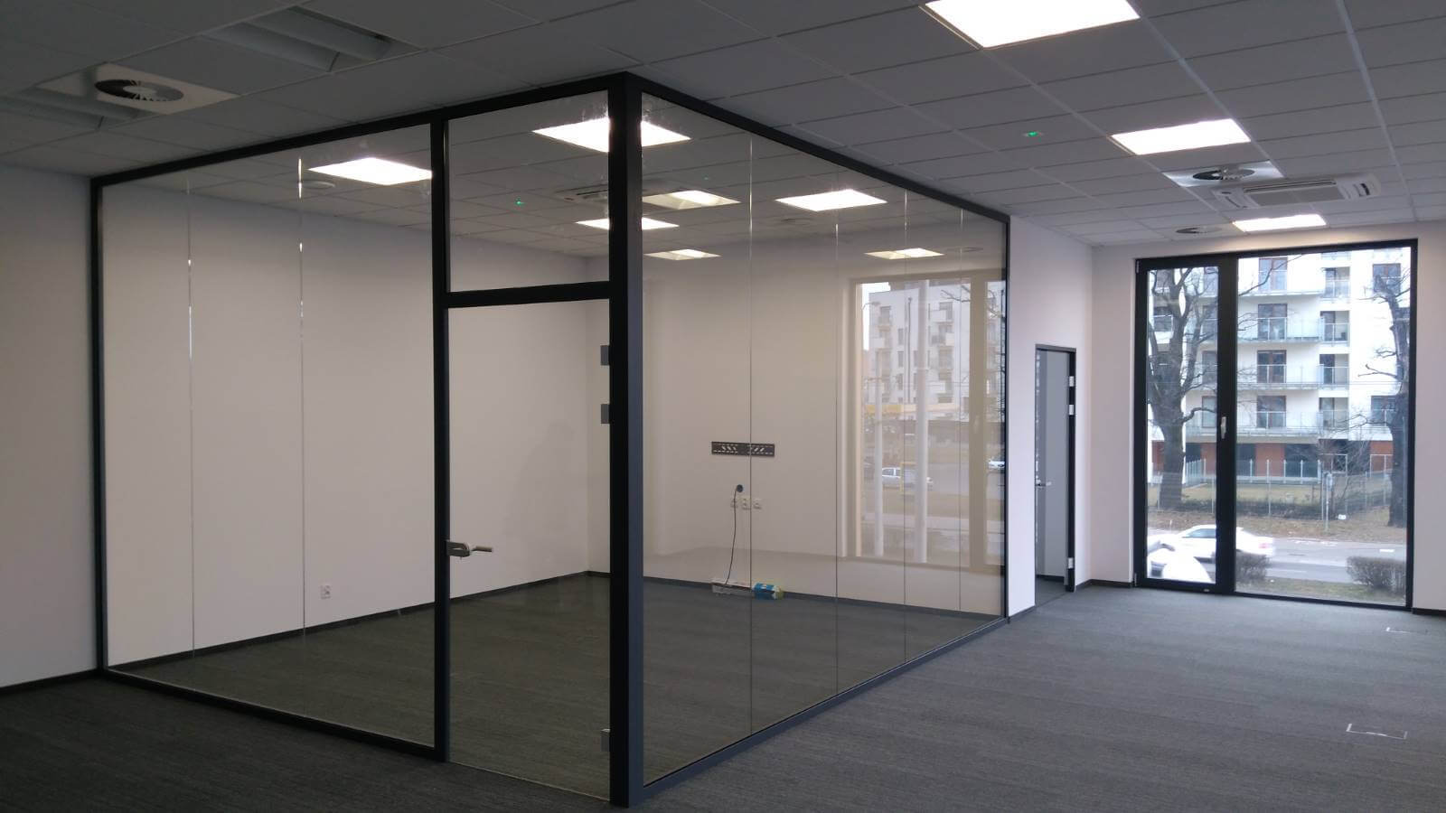 Stałe szklane ściany działowe